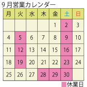 9月営業スケジュール