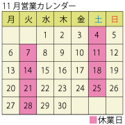 ちょっと遅れてしまいましたが11月の営業カレンダーになります。