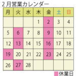 遅くなってしまいましたが、2月の営業スケジュールになっております。