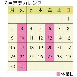 7月営業スケジュール
