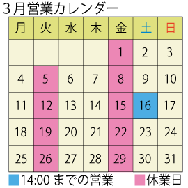 3月の営業スケジュールになります。
